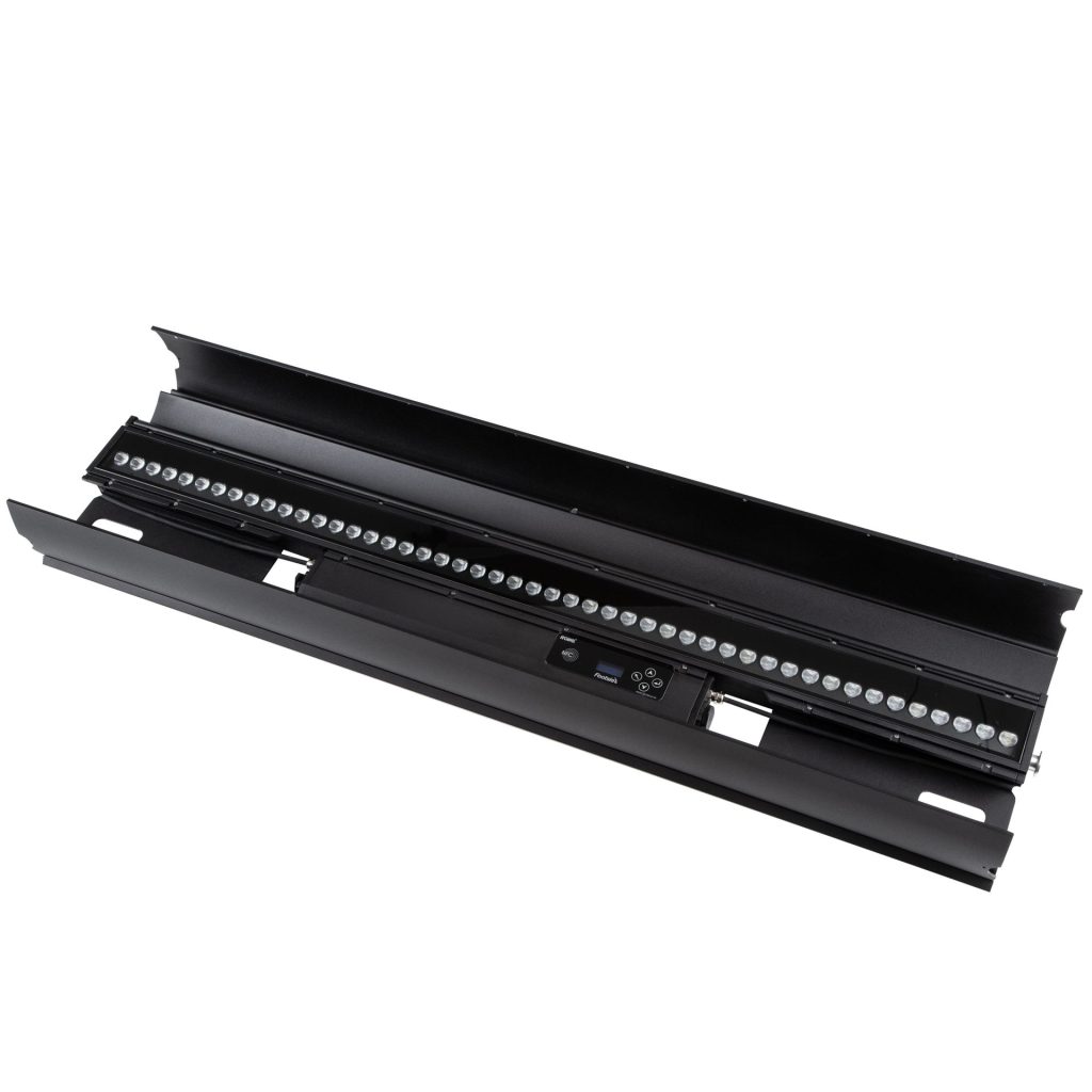 Patentovaná konstrukce umožňuje snadný a okamžitý přístup přes horní a spodní víko k displeji svítidla, napájecímu zdroji a kabelovému žlabu. Výrobce umístil do horního a spodního víka půlkruhové otvory, které umožňují vytažení kabelů např. k mikrofonům či reproduktorům všude tam, kde je to na jevišti potřeba. Napájení a datová připojení jsou realizována prostřednictvím konektorů PowerCON True1 s krytím IP65 a XLR 5pin. (DMX in / out).