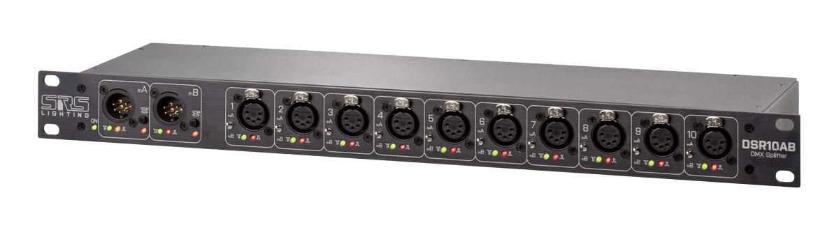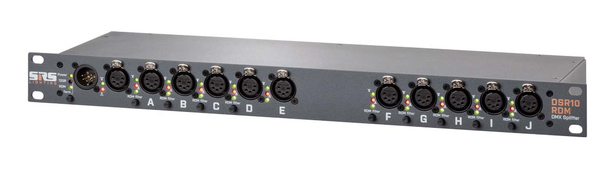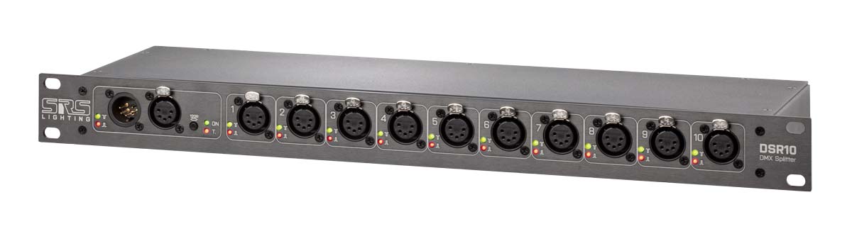 Rackové splittery řady DSR10 nabízí rozdělení do 10 portů. U splitteru DSR10 se jedná o rozdělení jedné DMX linky, stejně jako u splitteru DSR10-RDM, který podporuje protokol RDM umožňující vzdálené adresování či flash svítidel a u splitteru DSR10AB jsou to pak dvě DMX linky.